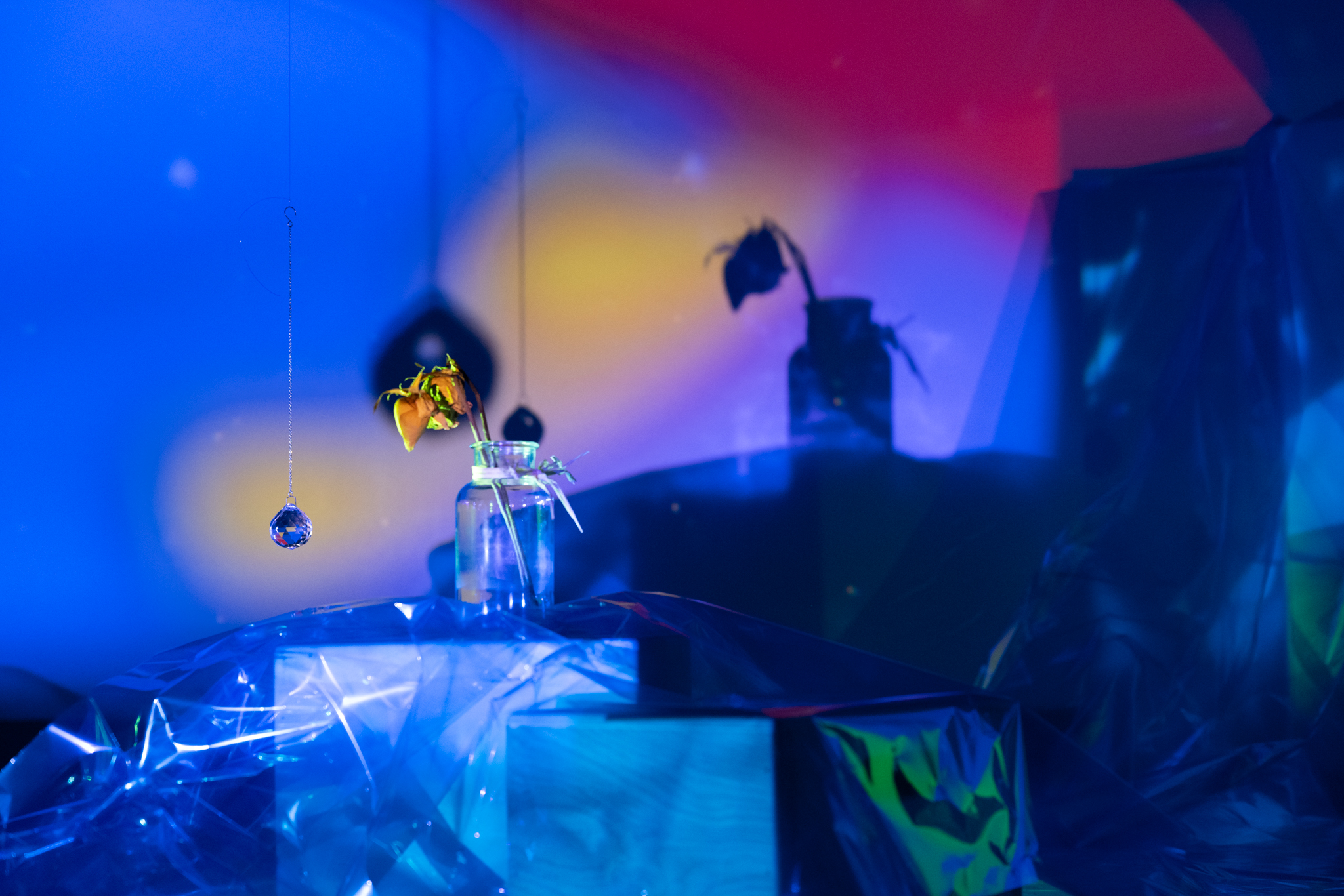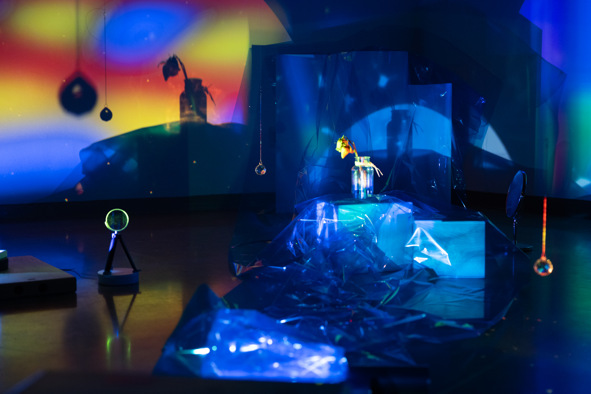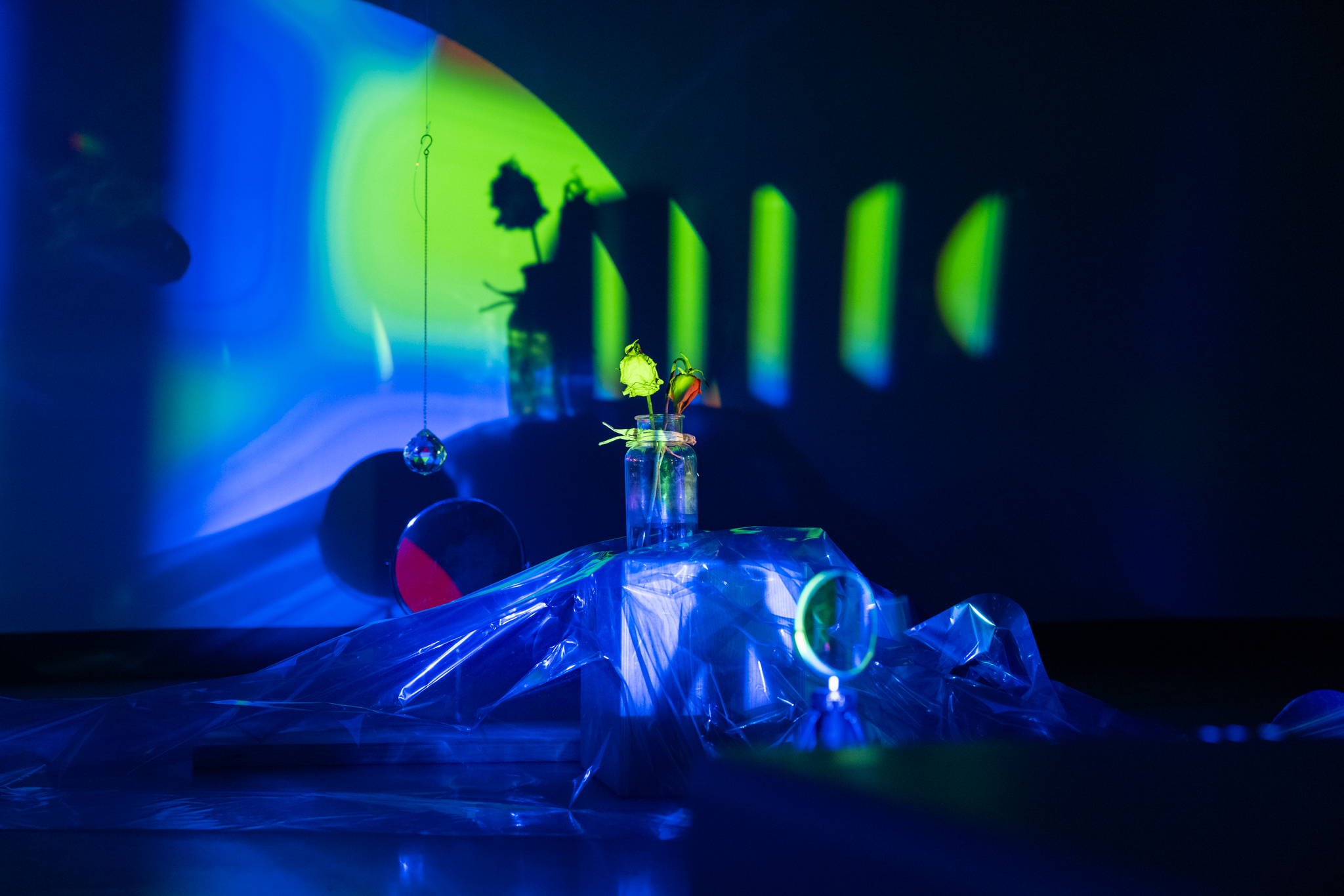 Material Used: Digital projectors, prism, color gel, glass, dry flowers, small rotating table