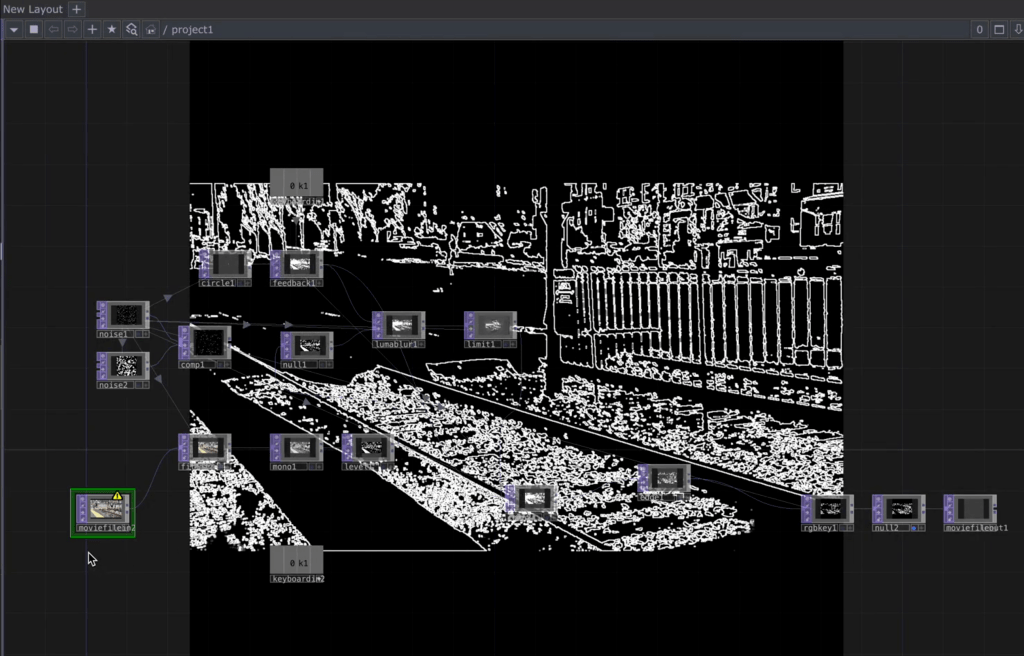 Interactive installation programmed in TouchDesigner. Installation requires a single screen (projector or monitor) and a laptop.